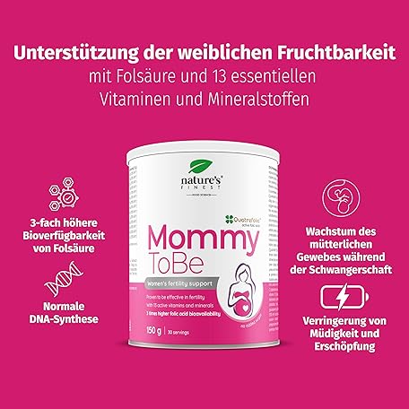 Sản phẩm Nature's Finest MommyToBe, High Dose Folic Acid Quatrefolic 5-MTHF with Vitamin B12 - Desire for Children & Early Pregnancy - Magnesium, Calcium, Iron, Zinc - 150 g Powder - Made in the EU đang được bán với giá ưu đãi là $30.2911 tại nước Đức.