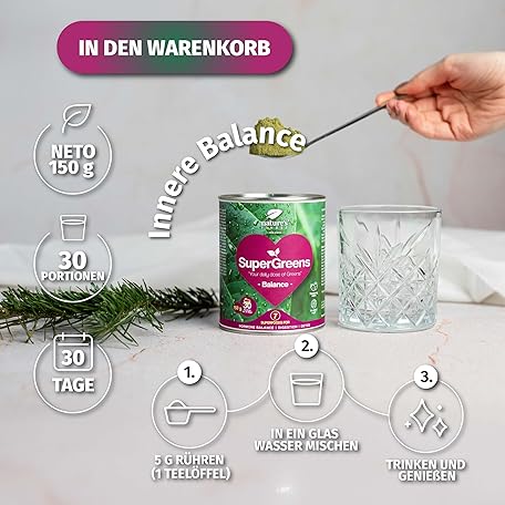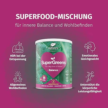 Sản phẩm Nature's Finest Supergreens Balance - Vegan Protein Powder with Barley Grass, Wheatgrass, Maca, Ashwagandha & Chlorella - Natural Green Helpers for Vitality & Wellbeing - 150 g đang được bán với giá ưu đãi là $21.3095 tại nước Đức.