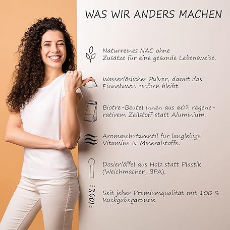 Thông tin sản phẩm Naturkur® NAC - 300 g in food-safe bag with fresh valve - N-acetyl-L-cysteine - laboratory tested, purely vegetable fermentation, no additives and carefully manufactured in Lower Franconia