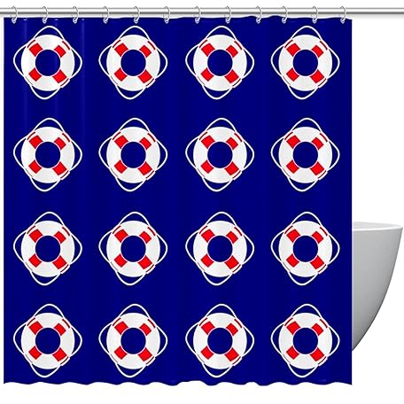 Nautischer Reise-Duschvorhang mit 12 Haken, wasserdicht und waschbar, 183 x 183 cm, Blau