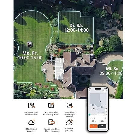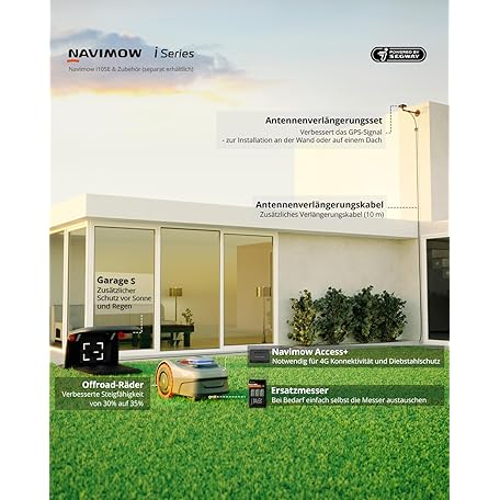 Thông tin sản phẩm Navimow i105E+Garage, Mähroboter ohne Begrenzungskabel, Empf. 500 m², Max. 600 m², RTK+Vision Rasenmäher Roboter Testsieger, Igelschutz Rasenroboter, KI Auto Kartierung