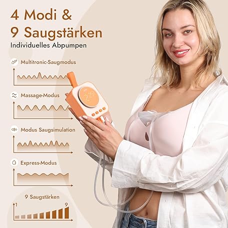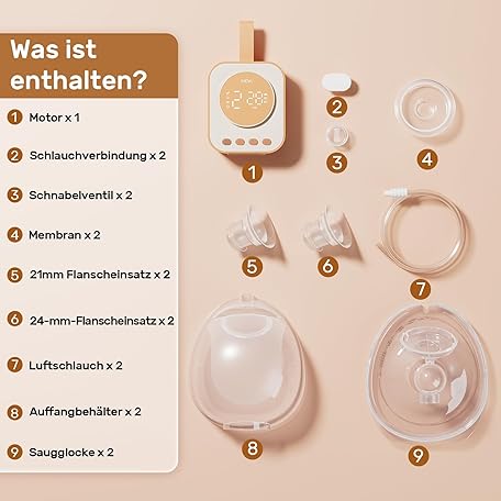 Sản phẩm NCVI Breast Pump Electric Portable Hands-Free 4 Modes and 9 Levels Double Pump Combined with Strong Motor and Portable Cups, 21/24/28mm Flanges, Lightweight and Low Noise, Orange đang được bán với giá ưu đãi là $61.7267 tại nước Đức.