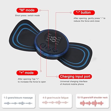 Thông tin sản phẩm Neck Massager, Portable EMS Mini Massager Pads, 8 Modes and 19 Cervical Massage Pads, Relieves Muscle Pain for Arms, Shoulders, Neck, Back, Construction