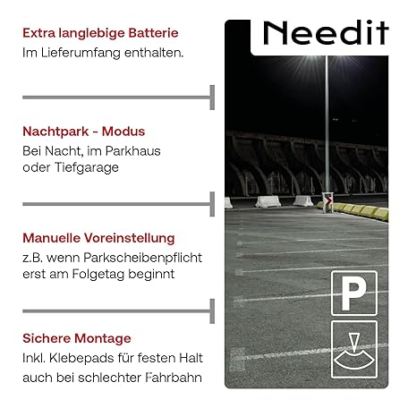 Thông tin sản phẩm Needit PARK LITE 1411 fully automatic parking disc, CR 2450 button cell included, blue