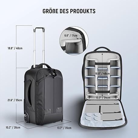 Sản phẩm Neewer Convertible Rolling Camera Backpack for SLR/DSLR Cameras and Accessories (NW3300) –Black đang được bán với giá ưu đãi là $191.1206 tại nước Đức.