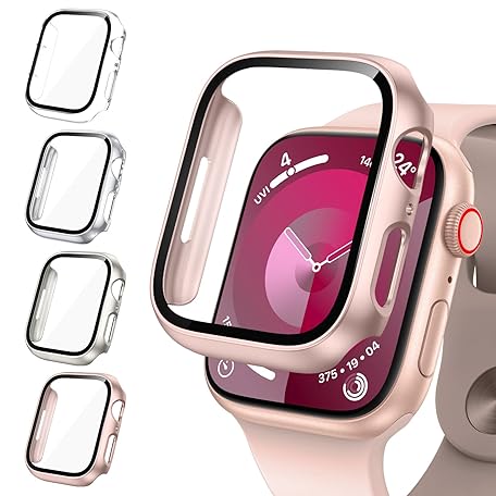 Neitra 4 Stück Hülle für Apple Watch Series 9 8 7 45mm Schutzhülle mit HD Glass Displayschutzfolie,Hart PC Voller Körper Kratzfest Gehäuse Cover für Apple Watch 45mm,Smartwatch Zubehör für Mann Frau