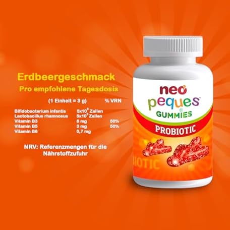 Sản phẩm Neo Peques Probiotic Gummies (30 Units), Dietary Supplement for Children from 3 Years, Gummy Bears with Probiotics and B Vitamins, Strawberry Flavour đang được bán với giá ưu đãi là $11.4341 tại nước Đức.