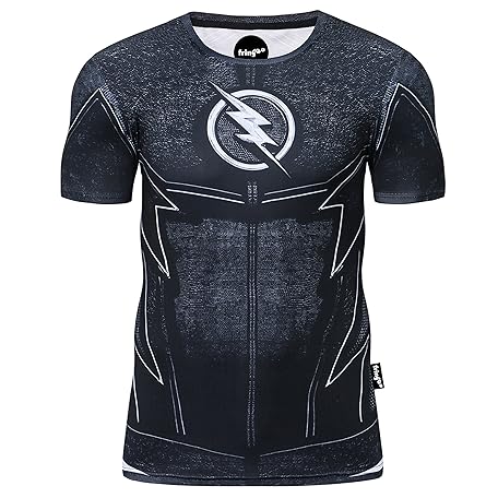 • Nessfit Herren Kompressions-T-Shirt mit Superhelden-Motiv, kurzärmelig, für Fitnessstudio, Laufen, Thermotraining Gr. L, Superheld 12