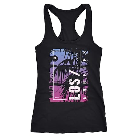 Neverless® Damen Tank-Top Los Angeles LA Ocean Side Sommer Palmen Aufdruck Print Schrift Fashion Bedruckt Racerback schwarz-pink M