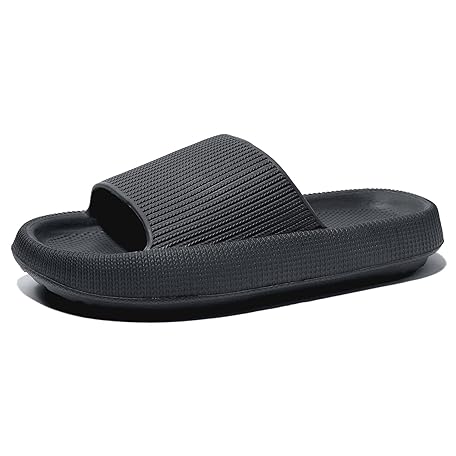 NewDenBer Cloud Slides Hausschuhe für Damen und Herren, weich gepolstert, dicke Sohle, Dusche, Badezimmer, drinnen und draußen, Hausschieber-Sandalen, Schwarz, 9-10 Women/7-8 Men