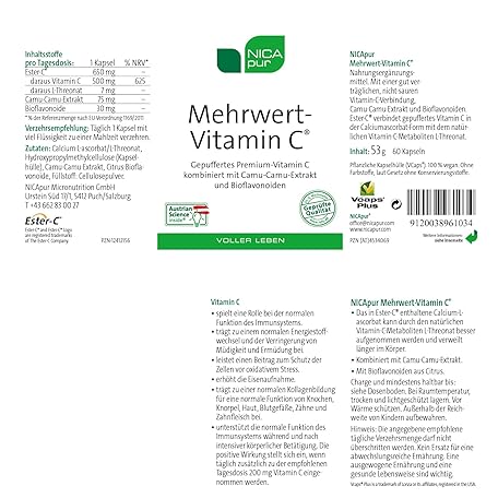 Sản phẩm nicapur Added Value Vitamin C/Vitamin C from the Non-Acidic Compound Ester-C and with Camu Camu Extract/with Bioflavonoids from Citrus/Pure Substance without Additives / 60 Capsules đang được bán với giá ưu đãi là $29.9968 tại nước Đức.