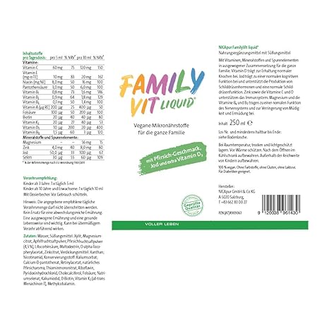 Sản phẩm nicapur FamilyVit Liquid® Vegan Multivitamins for the Whole Family - Essential Micronutrients for Children and Adults Sweetened with Xylitol - Made in Austria đang được bán với giá ưu đãi là $29.539 tại nước Đức.