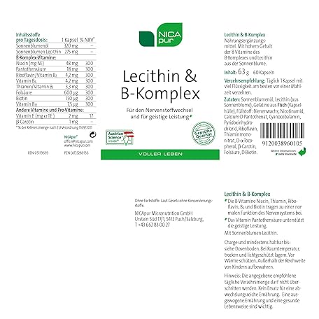Sản phẩm nicapur® Lecithin & B Complex I Sunflower Lecithin + All 8 B Vitamins | For Nerves & Mental Performance | With All 8 B Vitamins I 60 Capsules đang được bán với giá ưu đãi là $26.1055 tại nước Đức.