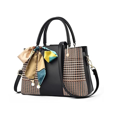 NICOLE & DORIS Elegant Women's Designer Shoulder Bags Fashion Handbag with Woven Pattern PU Leather Tote Bag Women Shoulder Bag with Pendant, black, Unique, fashionable