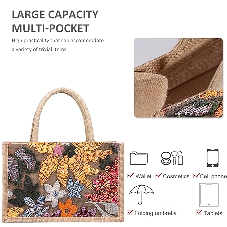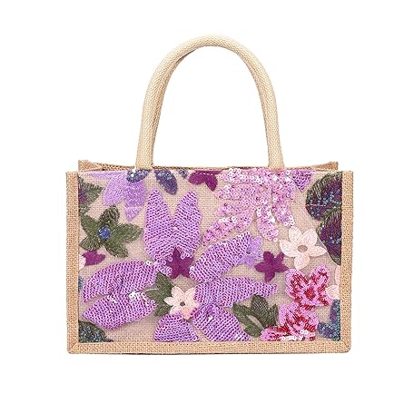 Sản phẩm NICOLE & DORIS Jute Bags Large Shopper Bag Women's Tote Lightweight Shopping Bag Foldable Beach Bag Handbag with Embroidery Flower for Picnic Travel Everyday, purple đang được bán với giá ưu đãi là $44.9298 tại nước Đức.