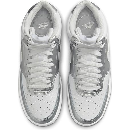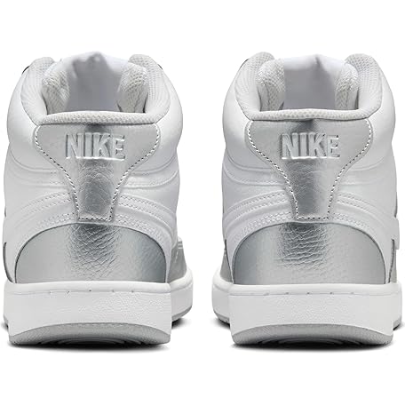Thông tin sản phẩm Nike Women's NikeCourt Vision Mid Trainers, White/Metallic Silver, 43 EU, White metallic silver