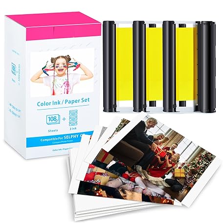 NineLeaf 1 Piece Compatible with Canon Selphy CP1500 CP1300 KP-108IN Ink 3115B001 (AA) and Photo Paper Set for CP Printer CP1200 CP1000 CP810 CP910, 3 Colour Ink Cartridges / 108 Sheets Paper 100 x
