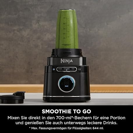 Thông tin sản phẩm Ninja 2-in-1 Detect Power Mixer Pro & Single Serve, 1200 W Mixer with Jug, & 2 x Single Serve Cups, Smoothies Mixing, Chopping Vegetables & Mixing Frozen Drinks, Black, TB301EU
