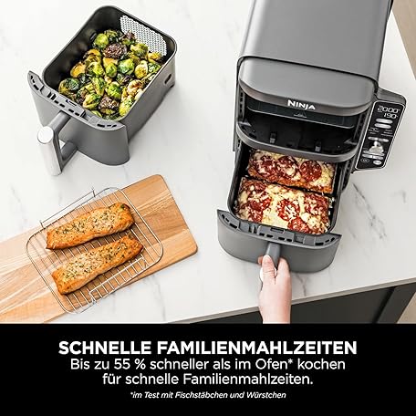 Sản phẩm Ninja Double Stack XL Air Fryer Hot Air Fryer, 9.5 L Airfryer, Double Basket Hot Air Fryer with 4 Cooking Levels, 2 Baskets, 2 Racks, Space Saving Design, 6 Cooking Functions, 8 Servings, Grey SL400EU đang được bán với giá ưu đãi là $188.352 tại nước Đức.