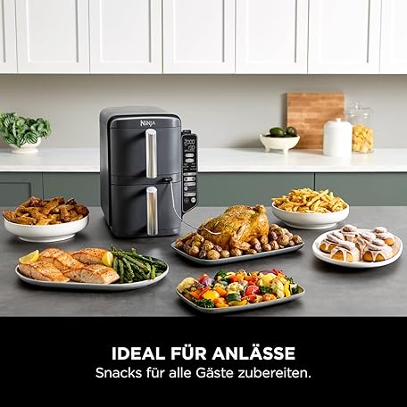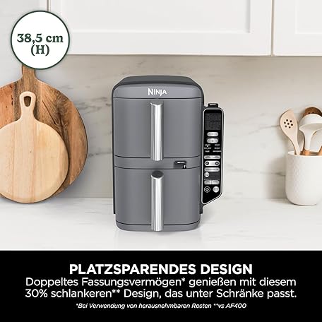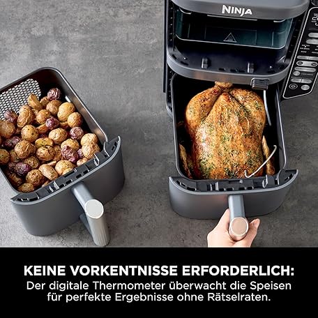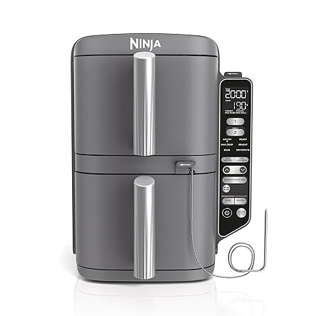 Thông tin sản phẩm Ninja Double Stack XL Air Fryer with Digital Thermometer, 9.5 L Airfryer, Vertical, Four Cooking Settings, 2 Cooking Levels and 2 Levels, 6 Cooking Functions, 8 Servings, Grey SL451EU