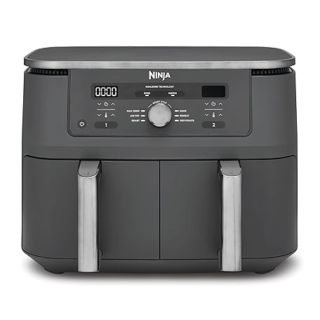 Ninja Dual Zone Digital Air Fryer, 2 Drawers, 6-in-1, Hot Air Fryer, 9.5L, Hot Air Fryer, Max Crisp, Roasting, Baking, Reheating, Dishwasher Safe Baskets, Metallic Grey DZ400EU