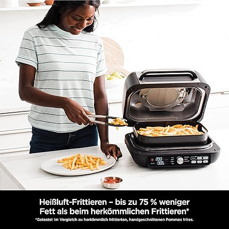 Thông tin sản phẩm Ninja Foodi MAX PRO Grill, Plancha Flat Grill Plate & Airfryer, 3.8 L Hot Air Fryer, Air Fryer with Digital Temperature Sensor, Dishwasher Safe Parts, 7-in-1, Silver/Black AG651EU