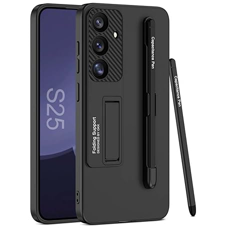 NINKI Case Für Samsung Galaxy S25 Ständer Hülle mit Stift, dünne stoßfeste PC Handyhülle Schutzhülle für Samsung S25 5G Cover Stand, Galaxy S25 Phone Telefonhülle Slim Schwarz