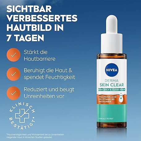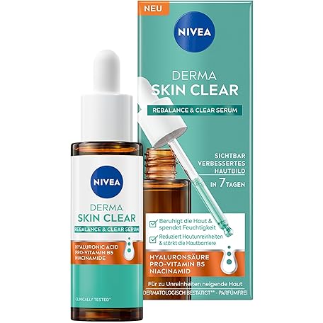 Thông tin sản phẩm NIVEA Derma Skin Clear Rebalance & Clear Serum, Face Care for Visibly Improved Skin, Moisturising Hyaluronic Serum with Niacinamide (30 ml)