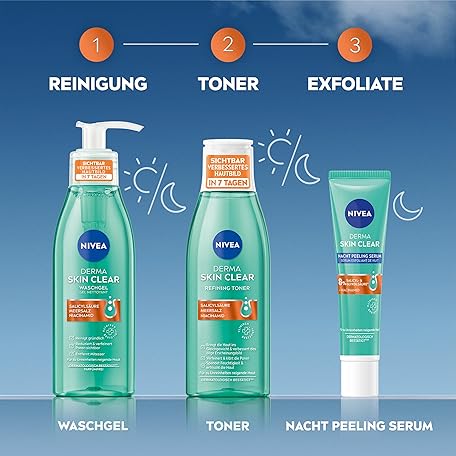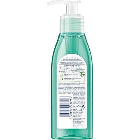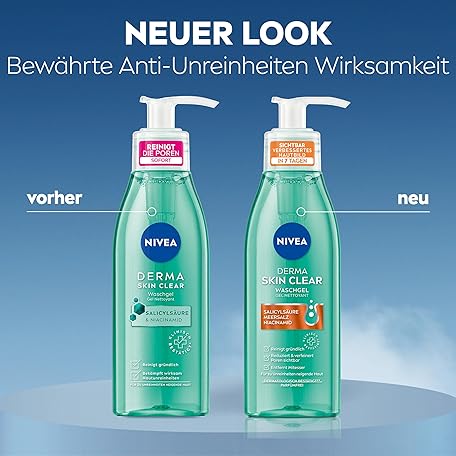 Thông tin sản phẩm NIVEA Derma Skin Clear Waschgel, Cleanser für ein sichtbar verbessertes Hautbild, effektive Gesichtsreinigung für unreine Haut mit Salicylsäure & Niacinamid (150 ml)