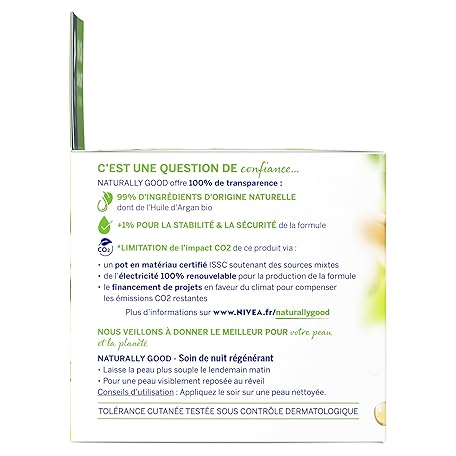Thông tin sản phẩm NIVEA Naturally Good Regenerating Night Cream 50 ml, Face Care with 99% Natural Ingredients, Night Cream with Organic Argan Oil & Valuable Oils