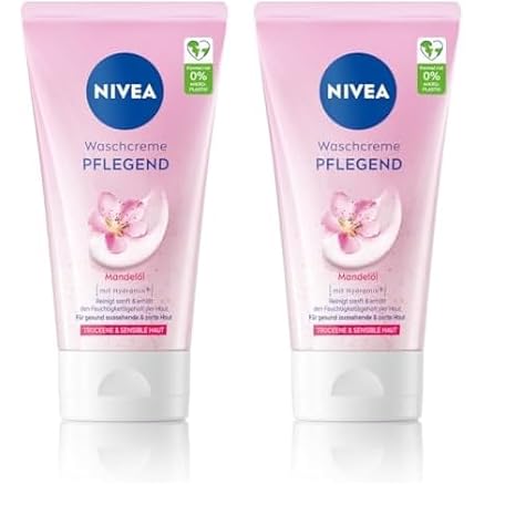 NIVEA Nourishing Wash Cream with Almond Oil, Gentle Facial Cleansing for Dry and Sensitive Skin, Extra Mild Cleanser for Face, Nourishing Cleansing Cream (150 ml) (Pack of 2)
