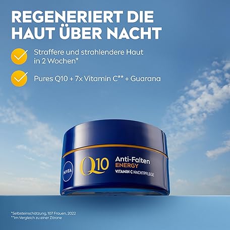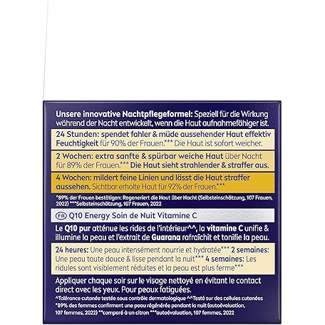 Thông tin sản phẩm NIVEA Q10 Anti-Wrinkle Energy Vitamin C Night Cream, Moisturising Night Cream with Q10, Vitamin C and Guarana Extract, Firming Face Care for Tired Skin (50 ml)