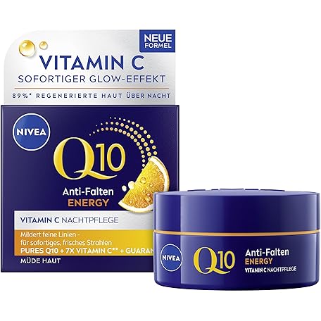 Sản phẩm NIVEA Q10 Anti-Wrinkle Energy Vitamin C Night Cream, Moisturising Night Cream with Q10, Vitamin C and Guarana Extract, Firming Face Care for Tired Skin (50 ml) đang được bán với giá ưu đãi là $12.7748 tại nước Đức.