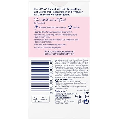 Thông tin sản phẩm NIVEA Rose Petal 24h Day Cream (50 ml), Face Care with Rose Water and Hyaluron, Light Gel Cream for Smooth Delicate Skin