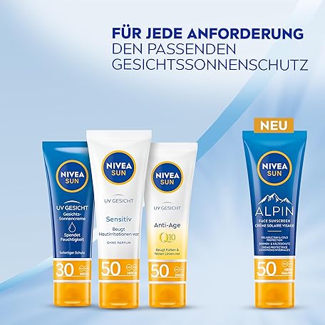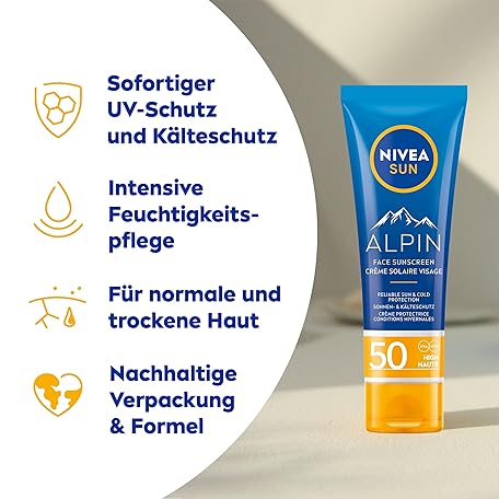 Thông tin sản phẩm NIVEA SUN UV Face Alpine Sun Cream, Protective Face Care with SPF 50, Sun Protection for Sensitive Skin, Instant UV and Cold Protection in Winter (50 ml)