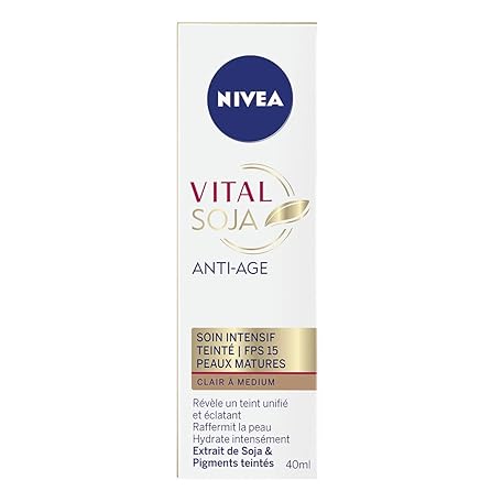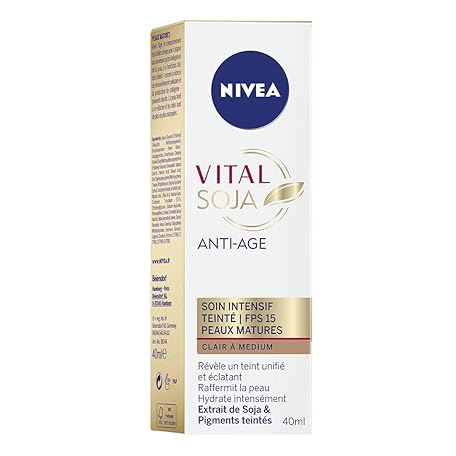 Sản phẩm Nivea Vital Soy Anti-Ageing Intensive Care, Tint Light to Medium, SPF 15 (1 x 40 ml), Anti-Ageing Serum, Enriched with Soy & Tinted Pigments, Face Care for Women Mature Skin đang được bán với giá ưu đãi là $17.4291 tại nước Đức.