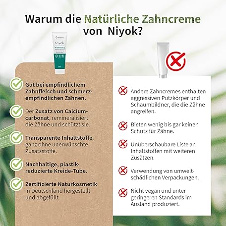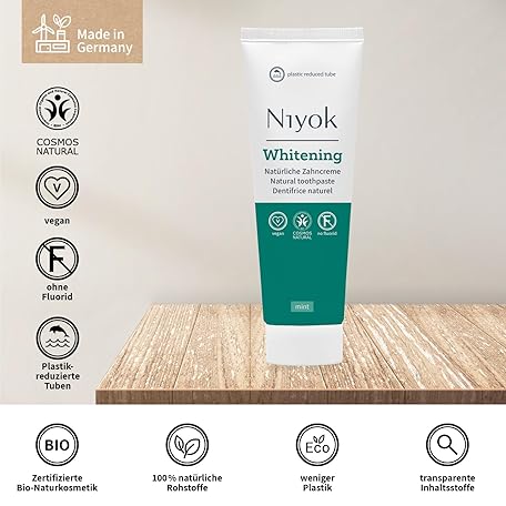Sản phẩm Niyok® Whitening Toothpaste "Mint" (75 ml) • Remineralising Toothpaste for White Teeth • Natural Care & Freshness • Plastic Reduced Tube • No Fluoride & Vegan đang được bán với giá ưu đãi là $7.6954 tại nước Đức.