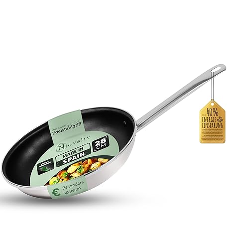 Novaliv Energiesparpfanne 28 cm Einsparung bis zu 40% - Emaillierter Stahl, Antihaft Beschichtung innen, sehr leicht zu reinigen, Taupe Pfanne für alle Herdarten Spülmaschinenfest Edelstahlgriff