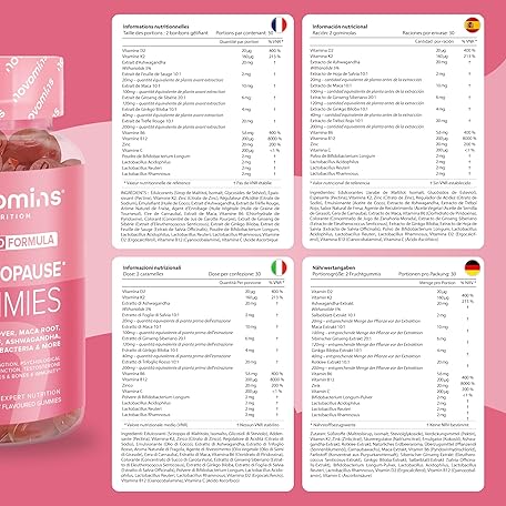 Thông tin sản phẩm Novomins Perimenopause Gummies - Dietary Supplement for Perimenopause & Menopause - with Red Clover, Sage Leaf, Zinc, Ashwagandha, Vitamin B6 - Sugar & Gluten Free - Hormone Balance for Women