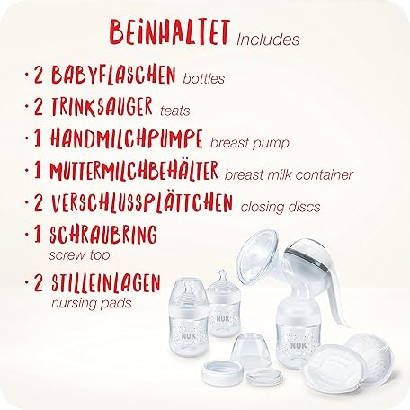 Thông tin sản phẩm NUK Nature Sense Hand Breast Pump, Nursing Set with Hand Breast Pump, Baby Bottles & Ultra Dry Comfort Nursing Pads, 6 Pieces & Thermal 3-in-1 Baby Bottle Warmer, Gentle Defrosting