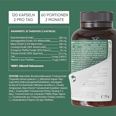 Sản phẩm Nullure Testo-One T Capsules | Independently Tested | Maca + Tribulus + Fenugreek + Ashwagandha + Ginseng + Zinc | Vegan & No Additives | 120 Pieces 2 Months đang được bán với giá ưu đãi là $33.027 tại nước Đức.