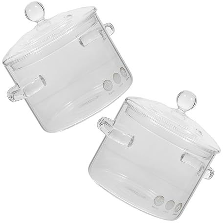 NUOBESTY Küchen Glas Schmortopf 2 Stück 1350 ml Borosilikatglas Suppentopf mit Griffen für Schongarer und Herdplatten