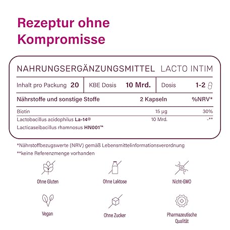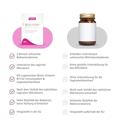 Sản phẩm Nupure® Lacto Intimate Vaginal Lactic Acid Bacteria, Plus Biotin for Mucous membranes, Oral Intake, Vaginal Probiotics, 20 Capsules, Vegan, Lactose Free đang được bán với giá ưu đãi là $18.1376 tại nước Đức.