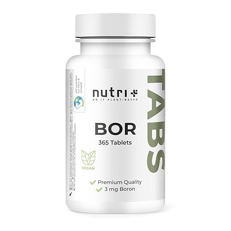 Nutri + Bor Tabletten 365x - 3 mg aus hochwertigem Borax - hochdosiert + vegan - frei von Füllstoff & Zusatzstoffen – laborgeprüft - Jahresvorrat