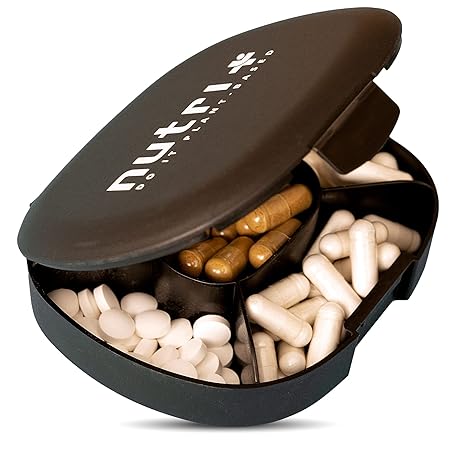 Sản phẩm Nutri + Capsule Box 11 x 10 x 3 cm - Pill Box for Storage 5 Days/Compartments - Pill Box - Supplement Box without BPA đang được bán với giá ưu đãi là $10.1152 tại nước Đức.