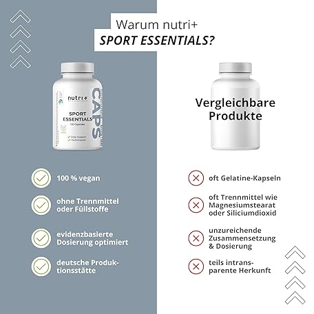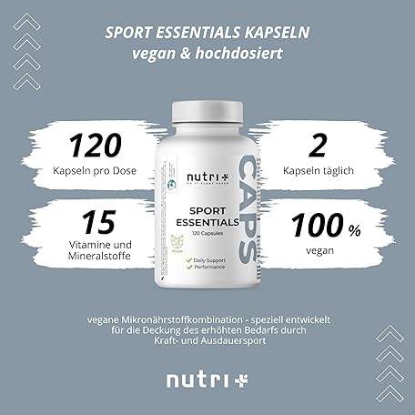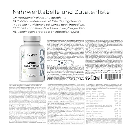 Sản phẩm Nutri + Sport Essentials - 15 Vitamins Minerals Amino Acids Antioxidants - A-Z Complete Daily Fitness - 120 Vegetable Capsules with Vitamin C, D3, Zinc đang được bán với giá ưu đãi là $25.3316 tại nước Đức.