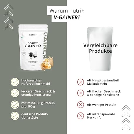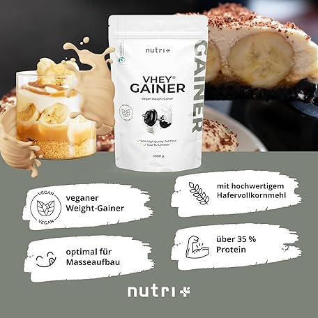 Sản phẩm Nutri + Weight Gainer Vegan 1 kg Banana Toffee - Vhey Gainer Mass for Muscle Building and for Weight Loss - Banana Caramel 1000 g without Added Sugar đang được bán với giá ưu đãi là $18.6499 tại nước Đức.