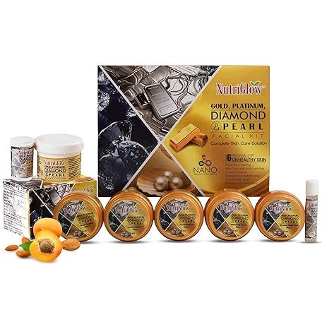Nutriglow Gold Platinum Diamond & Pearl Facial Kit (250Gm+10Ml) & Bleach (43 Gm) Complete Skin Care, All Skin Type, Instant Cleanses, Glowing Skin, Pack of 2