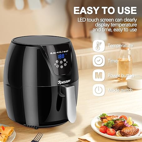 Sản phẩm NWOUIIAY Hot Air Fryers Air Fryer 1800 W LED Touch Screen 5.5 L Hot Air Fryers 7 Programmes Fryer without Oil Digital Display đang được bán với giá ưu đãi là $63.3617 tại nước Đức.