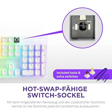 NZXT Function 2-2024 Optical Full Format Gaming Keyboard RGB Illuminated 8K Query Rate Linear Opt. Switches Adjustable Trigger Hot-Swap Gaming Keyboard White - German (QWERTZ)